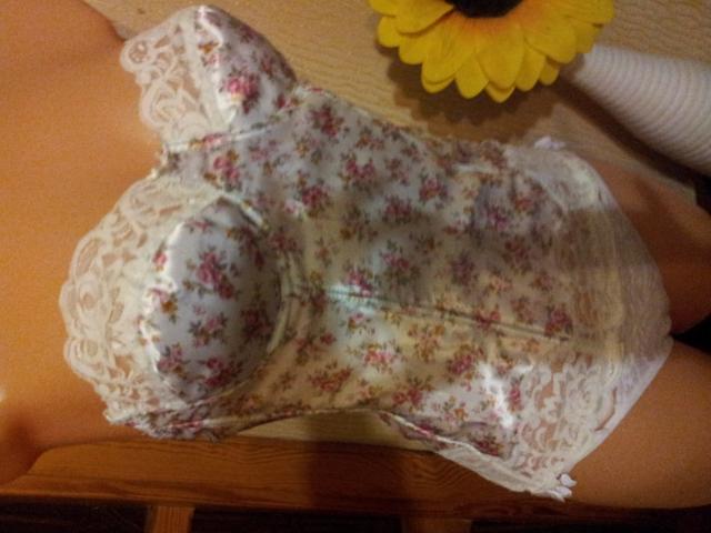 Labai grazutis korsetukas. Tinka 75/B krutinei. Nera akinamai baltas, pieno spalvos. Maloni atlasine medziagyte puikiai priglunda prie kuno. Ismatavimai (netempiant): po krutine 31 cm, juosmuo 29 cm. Uzsegimas trimis eilemis, tai galima platinti apimti dar 3 cm.