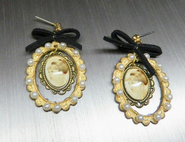 Gražūs Auskarai su "madam", perliukais ir kaspinukais
