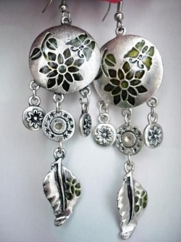 Gražūs auskarai žaliomis detalėmis