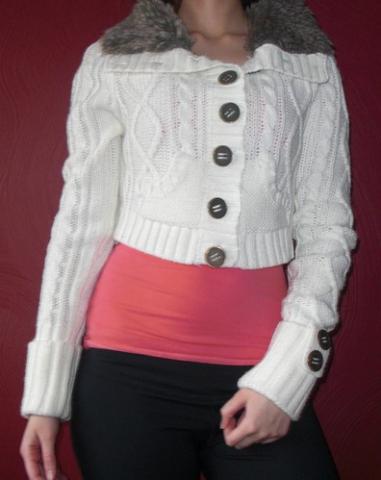 Labai garzus baltas storokas megztinukas ;) Eina rastas pynutemis, an kaklo kailiukas ;) sautes grazios metalines, trumputis, ir labai grazei atrodo ant kuno, grazios rankovytes ;) Bukle labai gera :)