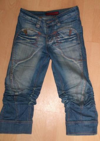 Gražūs bridžai, aukštu liemeniu, ties blauzdom susiraukia, įdomios kišenės, mažai nešioti. S-dydis.