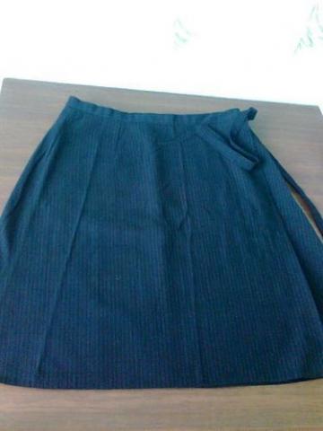 Trapecijos formos, uzsirisa sone, mazdaug iki keliu. Juodas su pilkom vertikaliom juostelem. Dydis - s-m.