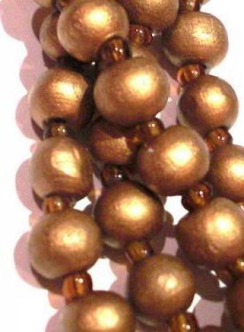 labai garzus gana ilgi karoliai, is mediniu bumbuliuku dazytu brindzine spalva, kuriu tarpuose biseris :) Atrodo tikrai labai grazei ant kaklo, tinka tiek iseigai tiek kasdienai :)
