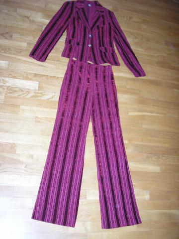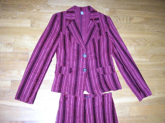 Grazus bordo spalvos kostiumelis, svarko ilgis 56cm, kelniu liemens apimtis 2x34cm (neitempus) (itempus 2x38cm) , kelniu ilgis 107cm. Dydis 38/40 Bukle puiki, kaip naujas.