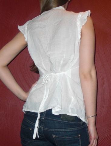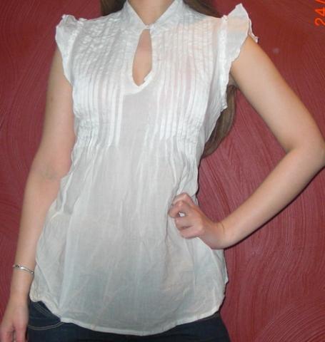 labai grazus balti marskinukai trumpomis rankovemis :) susisega sagute ties kaklo, eina lyg raukinukai :) nugaroje susirisa dirzelis :) atrodo tirkai labai puosniai :)