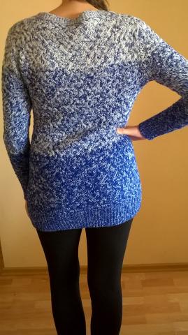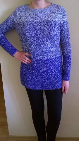 Megztas, pusvilnės megztukas. Mėlynai baltas.