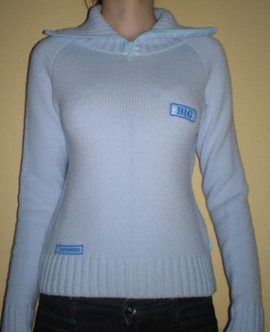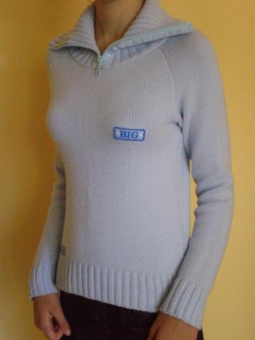 Paprastas, gražūs, šiltas megztinis, be gumulėlių .Mažai nešiotas megztinis, su užtrauktuku ant kaklo, be gumulėlių, su dviem užrašais : "Big" ir "Authorized". Paprastas, bet gražūs.