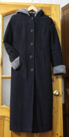 Gražus tamsiai pilkas paltas. Ilgas, įliemenuotas. Su pilkais kailiniais rankogaliais ir gobtuvu iš dirbtinio kailiuko. Su kišenėmis (matosi pirmoje nuotraukoje, kurioje vietoje kišenės). Siūtas pagal užsakymą. Tinka ~155-165 cm ugio merginai.