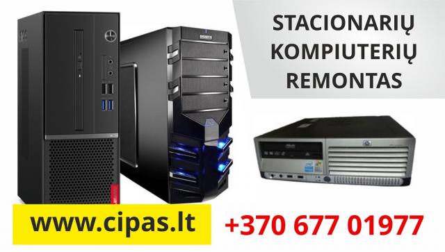 Greitas ir profesionalus STACIONARIŲ KOMPIUTERIŲ REMONTAS ŽEMIAUSIOMIS KAINOMIS, VIETOJE, PIRMOSE RANKOSE IR GREITAI remontuojame stacionarinius kompiuterius. Kompiuteris niekur nenukeliaus tik į mūsų meistro rankas. Mes pasirūpinsime, kad Jūsų kompiuteris veiktų stabiliai ir maksimaliu pajėgumu. Mūsų privalumas yra tai, kad KIEKVIENAS klientas gauna visas paslaugas vienoje vietoje. Teikame šias paslaugas : - NEMOKAMA DIAGNOSTIKA (1 diena), - VAIZDO PLOKŠČIŲ REMONTAS/KEITIMAS (1-2 dienos), - PAGRIN