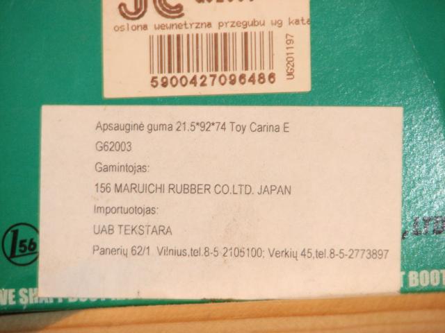 Naujos Toyota Corolla arba Carina E grnatų vidinės apsauginės gumos.