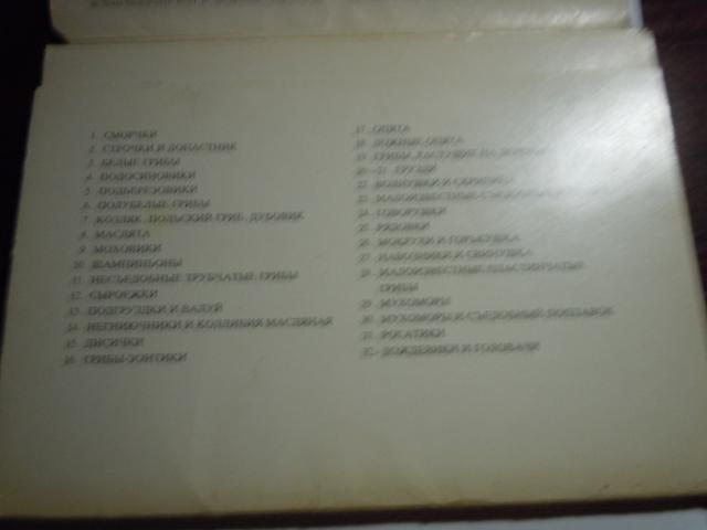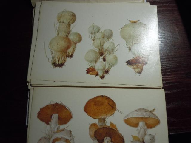 32 vienetai atviruku su smulkiu grybu aprasymu kitoje puseje. Rusu kalba. Išleista 1990 m. Atvirutes dideles - A2 formato. Atviruciu deklas yra siek tiek aptrintas (; bet pacios jos svarios ir tvarkingos