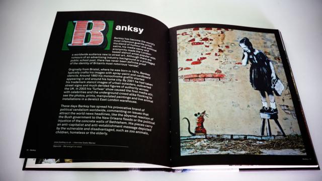 Nauja Knyga, puošta gražiais gatvės menininkų darbais. Istorijos, fotografijos + dvd dokumentinis filmas apie New Yorko, Londono, Paryžiaus, Sao paulo ir Tokio menininkų darbus, jų interviu. 111 psl. 22 meninkai tarp ju ir istorija apie Bansky. Baltos lankos knygyne mokėjau 60,20 lt.