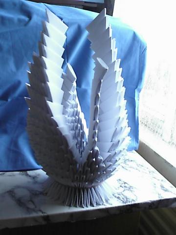 Gulbė išlankstyta iš balto popeiriaus.38 centimetrų aukščio.