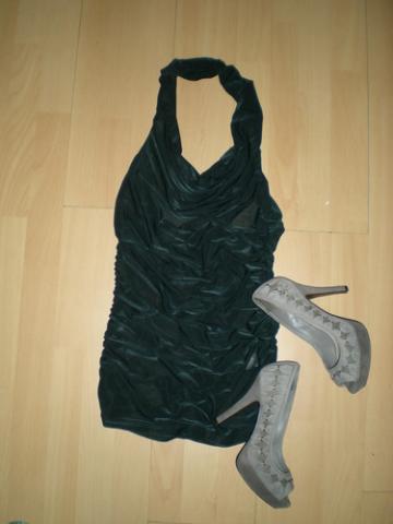 Sonuose paraukimai, ant uzpakaliuko taip pat, todel atrodo uzpakalis ypac status ir standus. Suknytes spalwa juoda su zalswu atspalwiu. Lengwa, labai tampri, todel ilgi galima reguliuot iki kokio norit. Wisas ilgis nuo pazasties 70cm. Prekinis ženklas: calliope Sudėtis: 95% poliester 5% elastan.