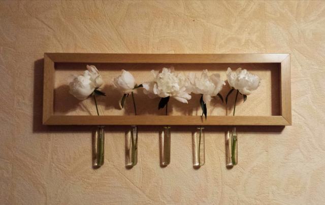 Loftinio stiliaus interjero detalė ieško labiau sau tinkančios sienos. Originali vaza su mėgintuvėliais