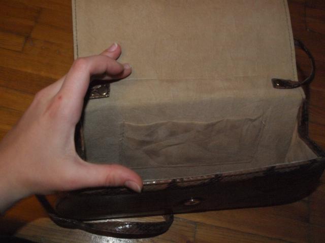 Visiškai nauja,nė karto nebuvo užsidėta,tiesiog neturėjau prie ko priderinti,gal kažkas kitas atras savo garderobe ką nors tinkamo :) Turi gan ilgą rankeną,kuri nusisega,ir mažutę rankenėlę,tad galima nešioti rankoje. aukštis maždaug delno dydžio,tad nėra labai didelė,tačiau nėra ir maža :)
