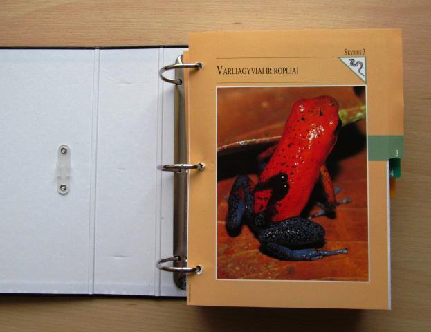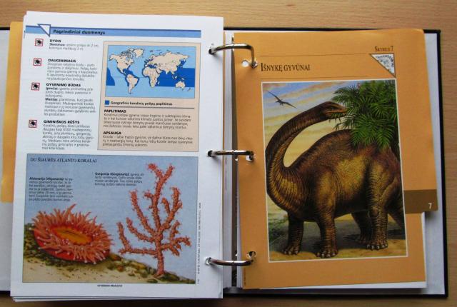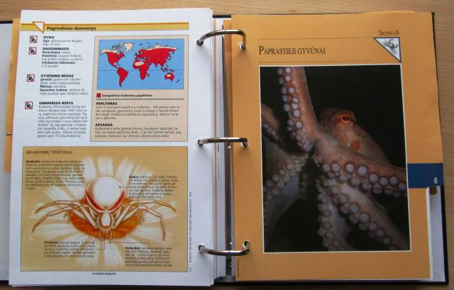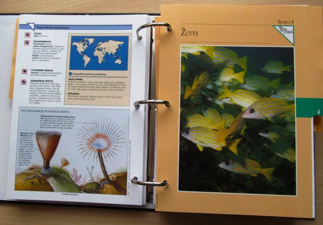 Segtuvas su skyriais: 3 varliagyviai ir ropliai, 4 žuvys, 5 bestuburiai: nariuotakojai, 6 paprastieji gyvūnai, 7 išnykę gyvūnai. Iš viso apie 300 skirtingų kortelių.