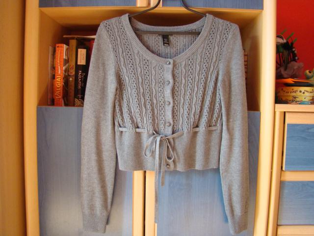 Beveik naujas, trumputis megstukas is h&m parduotuves. Nenublukusios pilkos spalvos. Apacioje uzsirisa bantukas. Labai graziai tinka ant marskinuku