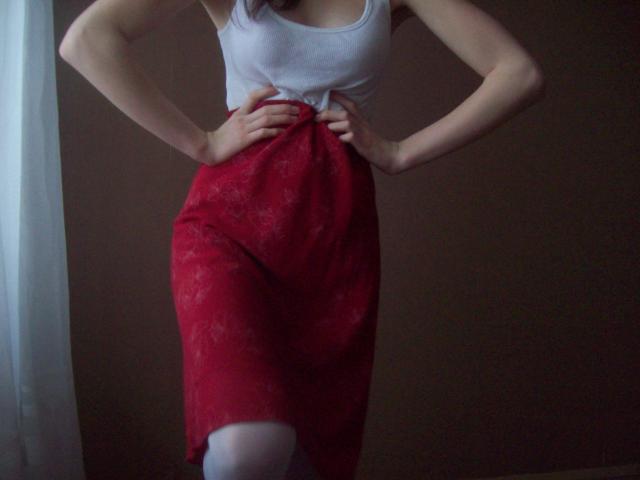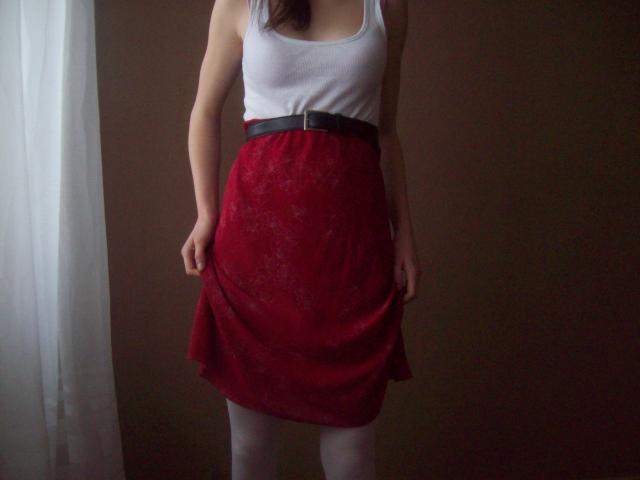 H&M sijonukas. dydis gana universalus turėtu tikti tiek S tiek L, nes yra guma kuri tamposi. Sijonukas lengvas, turi pamušala. Raudonas, su baltų siaurų linijų raštu . Mainausi be diržo : )