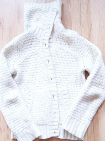 Aukštu kaklu ir su kišenėmis. Megztas ir labai šiltas