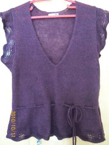 Tamsiai bordo spalvos liemene surisama per liemeni, puosta azuriniais mezginiais,M-L-XL