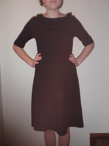 m-l dydzio suknute,visiskai juoda,jokiu demiu kaip ant nuotrauku nera.kelis kartus nesiota,taciau plauta tad yra truputelis tokiu susidariusiu burbuliuku;p seip jie nesimato,tik is labai arti,suknute silta,pirkta praitu metu gale,su laaaabai graziu