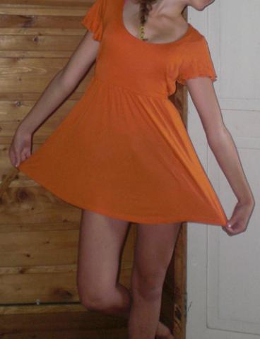 Vienąkart dėvėta orandžinė tunika-suknytė, surišama nugaroj; Dydis S/M. Netiko dėl didokos iškirptės.