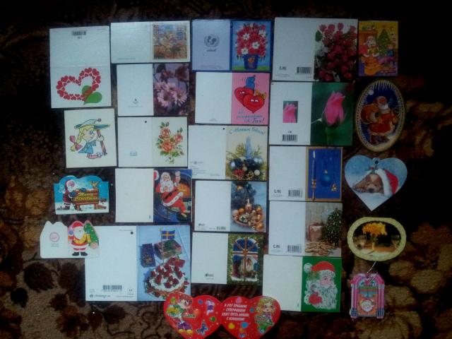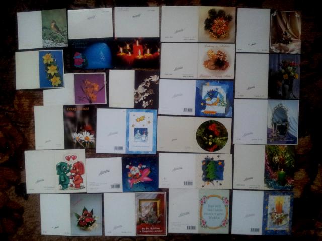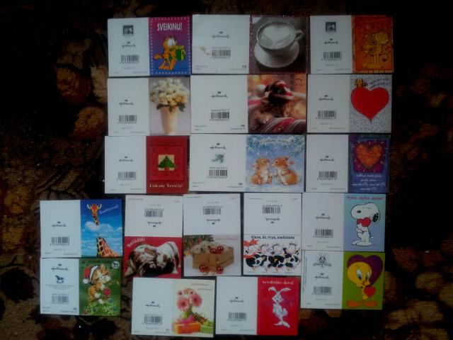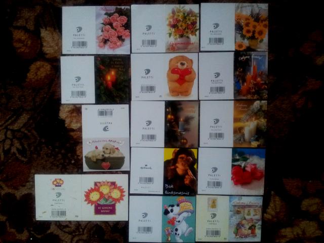 Nedidelio formato persilenkiantys Hallmark, Paletti, Ajonda, Puse ir kt. sveikinimo atvirukai, išleisti 90-ųjų pab.- 00-ųjų pradžioj. 80 egz., visi skirtingi. Dauguma jų prirašyti, todėl skirti kolekcijai. Tam tikra dalis (pagrinde - naujametiniai) yra puošti blizgučiu. Kaune (Petrašiūnuose), pasiteiravimui galite skambinti tel. 867 244 866 (ne sms) arba rašyti į elektroninį paštą lexgeneralislt@gmail.com