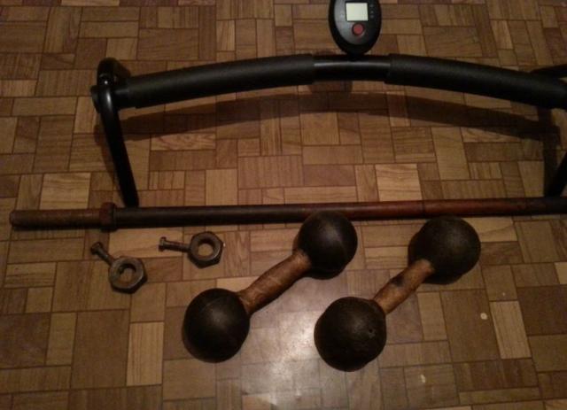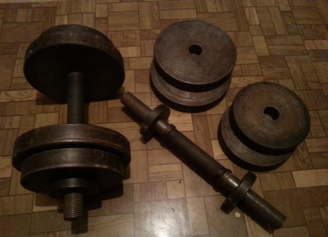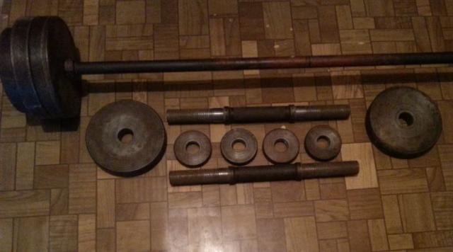 Parduodamas sporto inventorius : Surenkami metaliniai hanteliai (2x25kg) Rusiški metaliniai hanteliai (2x5kg) Štangos grifas Atsispaudimų treniruoklis... „Viskas įskaičiuota į vieną kainą “ Kaina: tik 40 € PIGIAU NERASITE! Tel. nr. 864144272