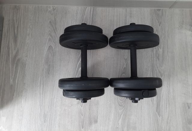 Plastmasiniai hanteliai su cemento uzpildu. 2x9kg