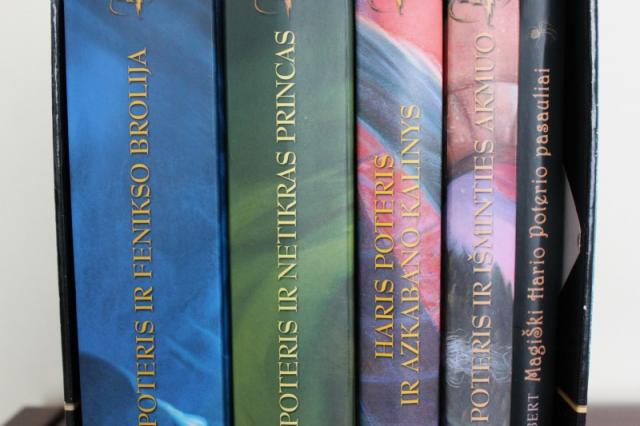 HP dėžė kurioje yra 1,3,5,6 dalys ir dar viena knyga Magiški HP pasauliai : )))