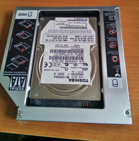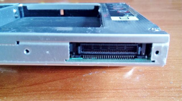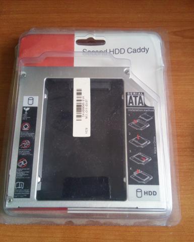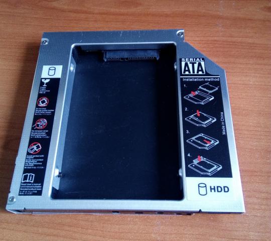 HDD caddy Dėklas dar vienam kietajam diskui vietoj dvd-rom'o nešiojamam kompiuteriui. Dėklo jungtis IDE, standžiojo disko jungtis SATA. Naujas! Geras daiktas kai vietoj paprasto disko dedamas SSD, o norisi turėti ir talpų diską. Tada vietoj kompaktinių diskų skaitymo įrenginio galima įsidėti seną talpų kietąjį diską.