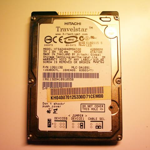 HDD Hitachi Travelstar IDE 40Gb (rezervuota)