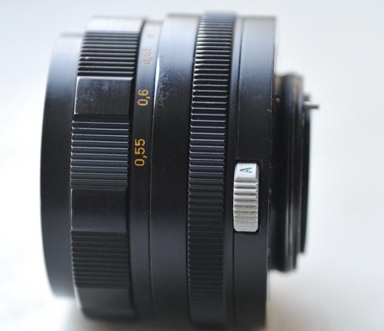 Geros būklės Helios 44M: 58mm/2. Yra diafragmos fiksavimas M ir A padėtyse.