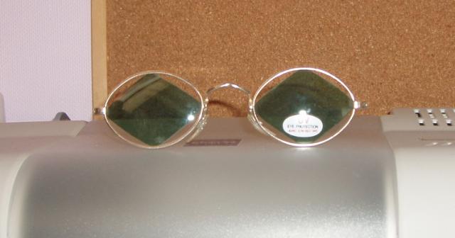 Apsaugo nuo ultravioletinių spindulių. Įdomūs labai apvalus rėmas o stiklas(žalias) rombo formos;]