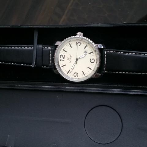 FIrminis,vokieciu brandas,zinomas laikrodziu pasaulyje.Nesiojau ji visai nedaug,pragulejo kelis metus stalciuje...jo verte tikrai nemaza,vien dirzeliai verti 20 e. Parduosiu uz simboline kaina, p.s. reikia isideti nauja baterija. nuoroda i tinklapi http://www.hirschuhren.com/