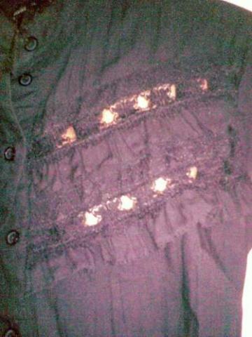 Nuotrauka daryta telefonu, tai nekokybiškai gavosi, kad domintu, pasistengsiu padaryti su fotoaparatu. Nerinukai ant apykakles ir krutines. Tinka S-M d.