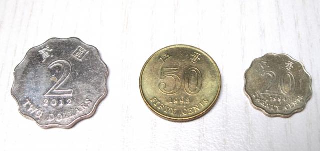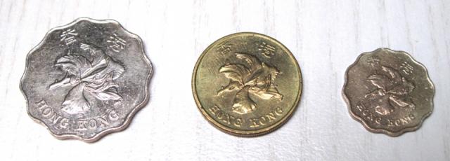 Honkongo 2 doleriai - 2012m.; 50 centų - 1998 m.; 20 centų - 1994 m.