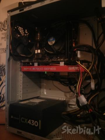 Puikiai veikiantis zaidimu kompiuteris. Procesorius: Intel core i5 4430 3,0ghz - Garantija yra. Motinine: Asus h81m-k - Garantija yra. Ramai: Corsair vengence 4gb 1600mhz - Garantija yra. Vaizdo plokste: Radeon HD 7870 Ghz (atitinka gtx 760 pagal nasuma) - Garantija yra. Korpusas; Cooler master 335u - garantijos nera. Maitblokis: Corsair cx430 - garantija pasibaigusi Galima pirkt atskirai.. Monitorius: Benq RL2455HM skirtas zaidimam su garantija ir tt +150 EUR. Ausines: Steelseries siberia v2 + 60