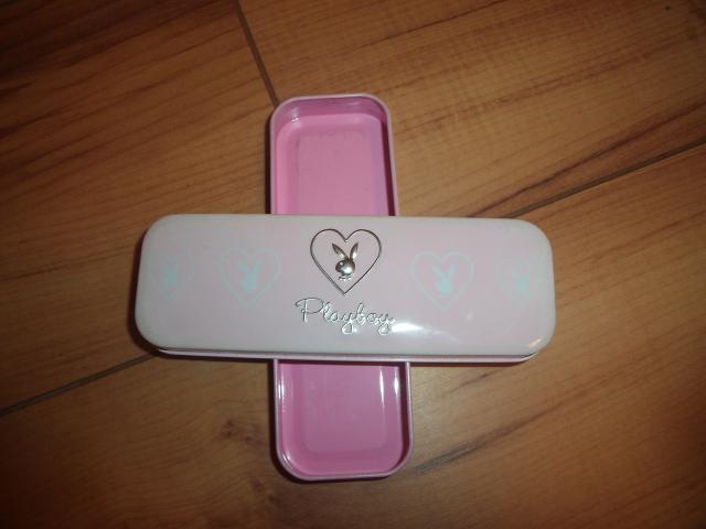 Playboy rožinis nedidukas penalas. Poroje vietų matyti, kad buvo naudotas, bet būklė vistiek labai gera.