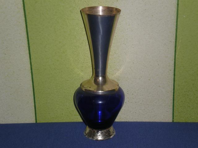Idomaus modelio melyno murano stiklo ir metalo vazele gelems