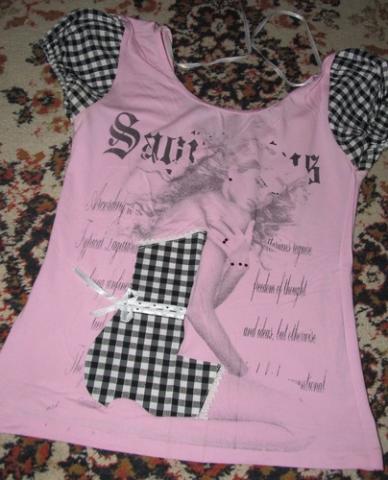 Labai grazi ir idomi palaidine. Su keletu blizguciu, kurie tikrai gerai prilipinti ir po skalbimu dar nenukrite. Lengvai pustos rankoves, nugaroje V formos iskirpte, krastai susirisa bantuku. Labai graziai atrodo tiek pasipuosti, tiek eilinei dienai prie dzinsu. Nesiota nedaug. Parduodu, nes isvaziuoju i uzsieni ir vietos jai taseje nebeliko.