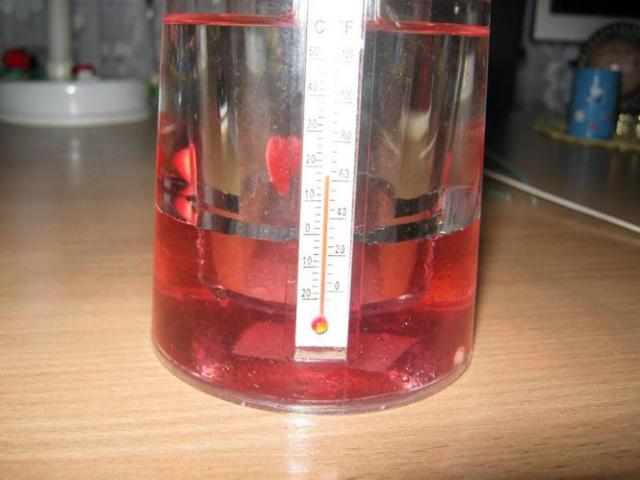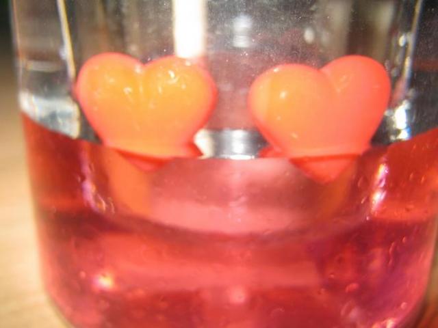 Viduje sviesiai raudonas skystis kuriame plaukioja dvi sirdutes. Labai praktiskas daiktas termometras+peistukine. Graziai ir idomiai atrodo neeilinis daiktas