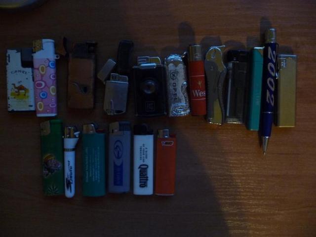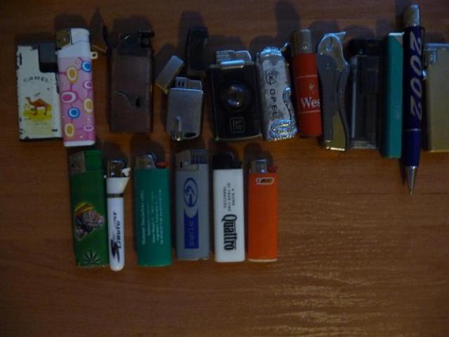 Įvairūs žiebtuvėliai. Biršutinėj eilėj papildomi, apatinėj deja ne. Dar Camel ir tas rožinis neveikia, kiti lyg ir veikia, bet gali visko būt