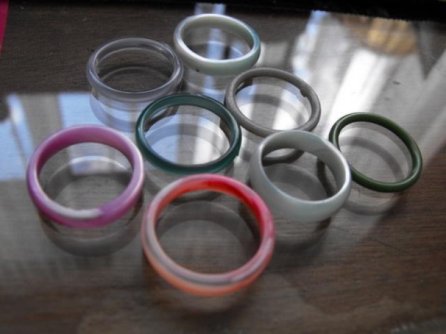Nelabai suprantu medžiagą iš kurios jie pagaminti, vieni plastmasiniai, kiti tokie į stiklinius užneša :D, įvairių dydžiu, storumų, spalvų :D