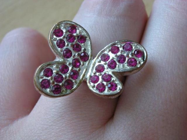 Žiedas nėra naujas, galinė pusė apsitrynusi, bet pats drugelis ne :) Dydis reguliuojasi