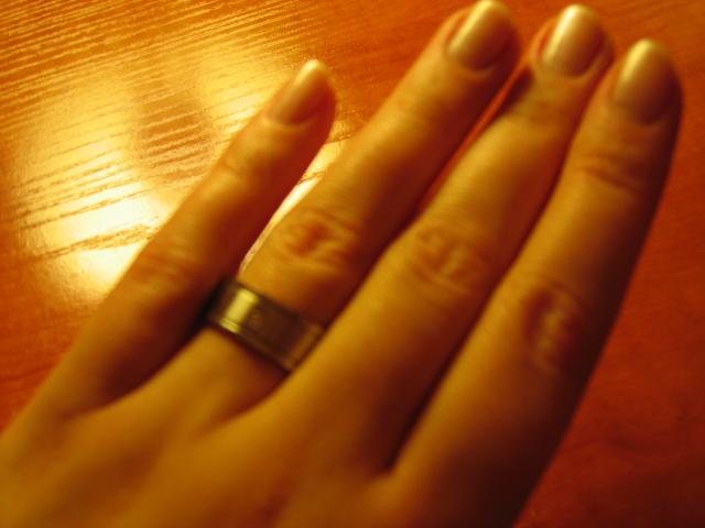 Žiedas Jai iš nerūdijančio plieno su cirkoniu, dydis 17-18, su dviem grioveliais iš šono.