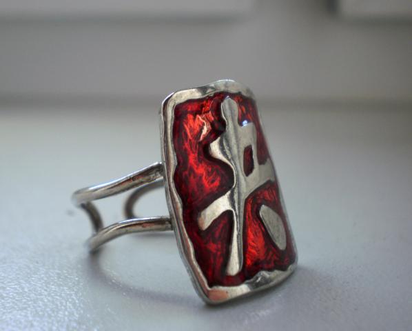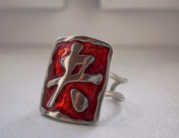 Nenaujas, tačiau gerai išsilaikęs žiedelis, raudonas, dydis reguliuojasi, todėl tiks kiekvienai:)))) ilgis 2cm