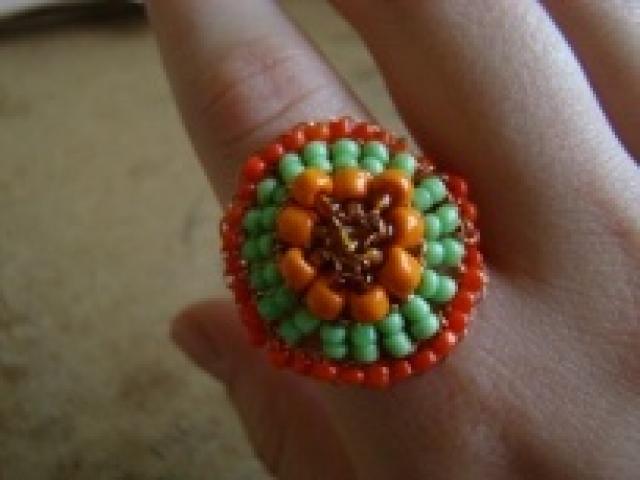 Gražus žiedas. padarytas iš viela suvertų karoliukų