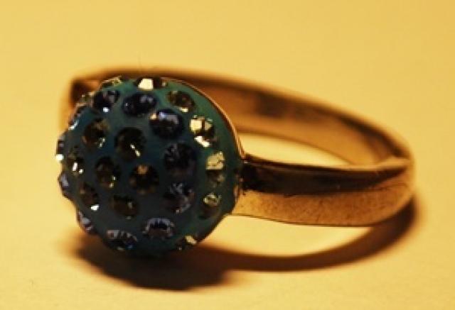 Mėlynas, blizgantis žiedas